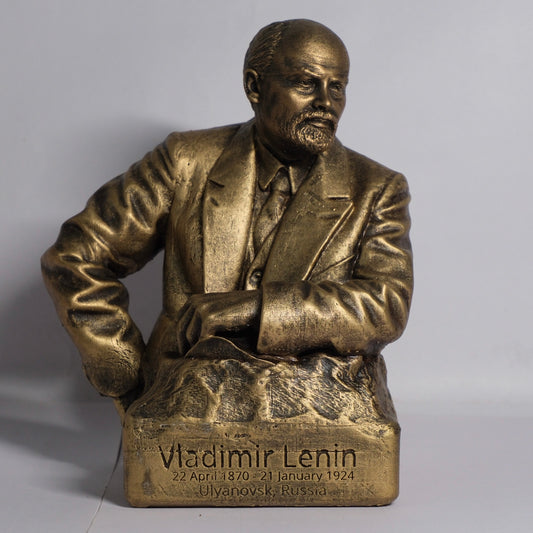 Vladimir Lenin Stone Dust Brass Finish 9" Statue Miniature